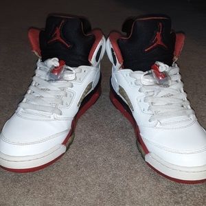 Jordan retro 5s black red and white 5 youth 6/6.5