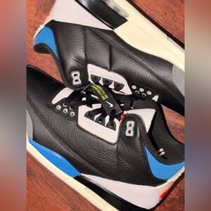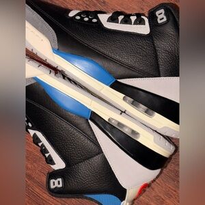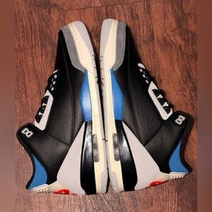 🔵Brand new air Jordan 3s in size 8 men. Comes with an extra pair of laces. :D These sneakers are remarkable❗️the black , the creamy midsoles, the blue, and even the grey is just to live for❗️ Words can’t explain how fresh these are ❗️