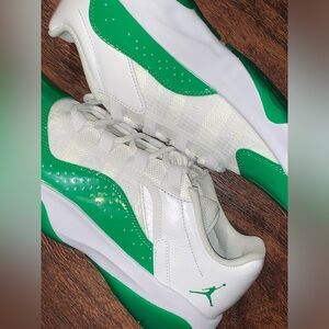 🟢Brand new Air Jordans in size 9.5 women. These sneakers are ultimately the freshest pair of Jordans I have seen in a while. Just look at all the amazing colors add up together so well. And they have near a Jordan retro 11 style…