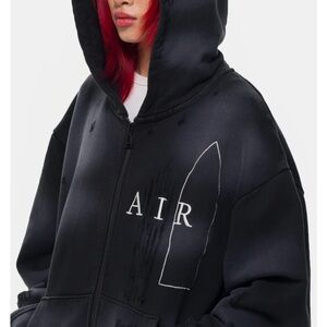 Jordan Brand x Téla women's limited edition standard fit zip up hoodie. Features heavyweight French terry fabric, distressed details, and an oversized fit.