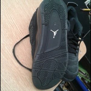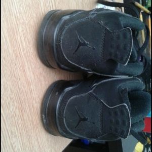 Retro Jordan 4 all black fresh shoelace in tact needs new owner that's it fresh n clean good color still can dust and have in box white is powder dust that off