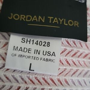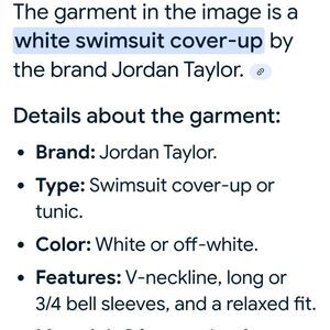 This elegant white swim coverup by Jordan Taylor features a semi-sheer striped pattern and a flattering V-neckline. Designed with 3/4 length sleeves and a loose, flowy fit, it offers a chic and comfortable layer for beach outings. The lightweight material and mid-thigh length make it a perfect choice for resort wear.