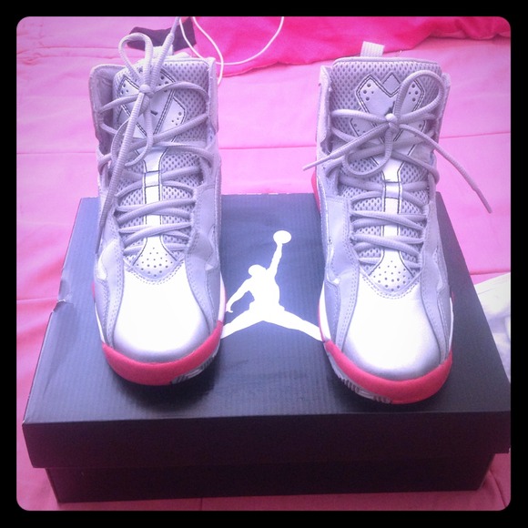 Jordan True flights. Worn a few times. Still in perfect conditions! Silver & red. NOT 7s, just similar. Very cute. Willing to negotiate.