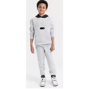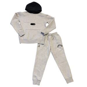 Jordans Boys Jogger Set Gray Black Fleece Pants Small Hoodie Medium Sporty Gym