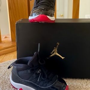 Jordan’s are a size 7C and the romper is 18 months. The romper has never been worn. The shoes are gently used. If you would like to purchase separately and not as a set, please let me know