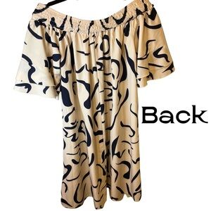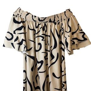 Joress Curve 1XL Cream and Black off shoulder plus size 37” knee length dress