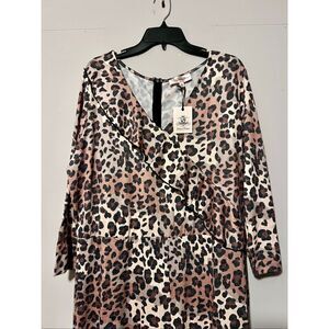 This sassy, sexy animal print outfit would look fabulous paired switch black, tan or gold heels, slides, flats or boots. Light enough for summer but heavy enough for winter with a coat.