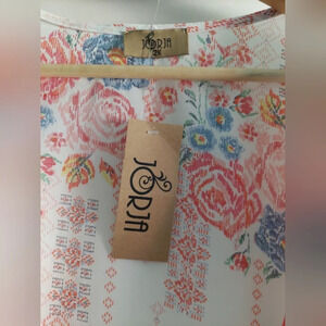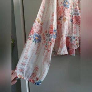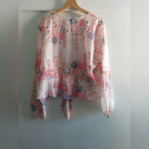 Jorja Floral Wrap Ruffle Hem Blouse plunging neck Elastic Cuffs Whimsical