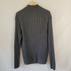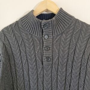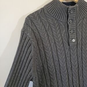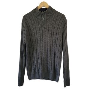 Jos. A. BANK Men's Gray Fisherman Sweater L Chunky Cable Knit Henley Button-Up