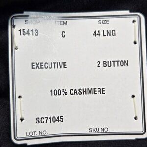 Jos A Bank 100% Cashmere Executive Blazer Men’s 44 Long Black 2 Button