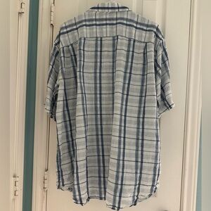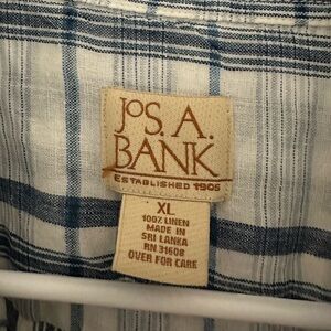 Jos. A. Bank 100% Linen Blue and White Plaid Short Sleeve Shirt size XL