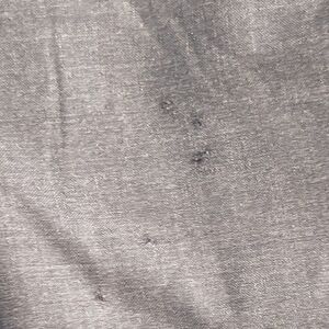 Tha Jos A Bank 100% wool charcoal sport coat blazer is a size 46R. It has some small holes in the back that are pictured but not noticeable from a distance. The price reflects this imperfection.
