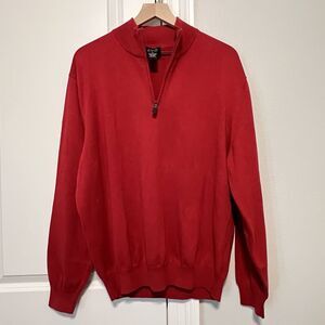 Jos A Bank 1/4 Zip Pullover Sweater Men’s Medium Red Golf Preppy Holiday Cotton