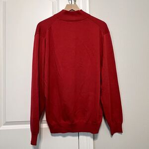Elevate your wardrobe with this stylish Jos. A. Bank pullover sweater. Made from high-quality Pima cotton, this tight-knit sweater features a mock neck with a 1/4 zipper closure, making it easy to put on and take off. The solid red color gives it a classic and preppy look, perfect for the university, Christmas, holiday, teacher, dad, love, and designer themes.