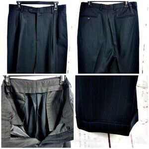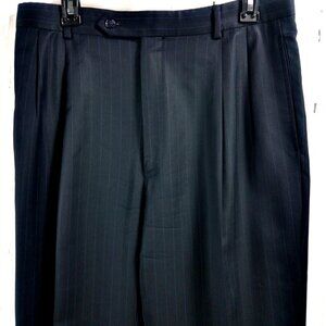Jos A Bank 1905 41L 2 Button Deep Blue Striped 2pc Suit 33x30.5 Pleated, Cuffed