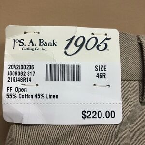 Jos A Bank 1905 Linen Blend Dress Pants Size 46 Unhemmed NWT