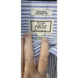 Jos A Bank 1905 Men 16.5 X34 Blue Stripe Tailored Fit Non Iron Buttondown Shirt