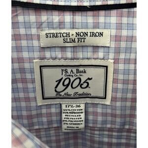 Jos A Bank 1905 Stretch Slim Fit Button Up Shirt Mens Size 17.5-36 Pink Blue