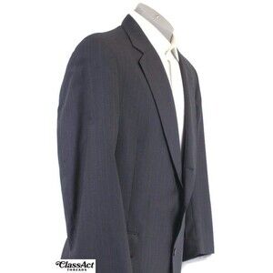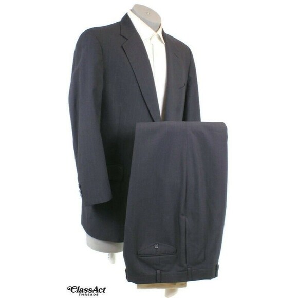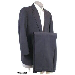 Jos A Bank 2 Piece Suit Mens Black Striped Wool 3 Btn 42L Pleated 32" W