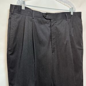 Jos A Bank Black 100% Wool Dress Pants Pleated Front Cuffed Hems Mens 41x29 Reg
