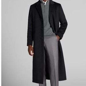 Jos A. Bank Black Wool/Cashmere Long Topcoat SIZE 46L
