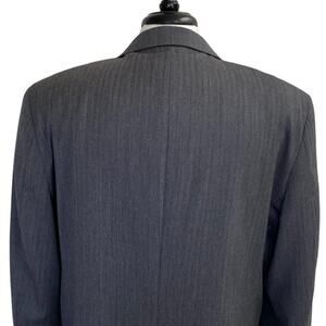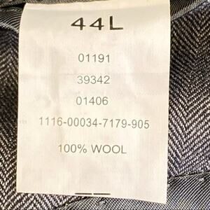 Elevate your wardrobe with this stylish Jos A Bank 44L men's suit jacket in grey herringbone wool with two button closure. Features outside and inside pockets, lining, and a back vent for comfort. Dry clean only for maintenance. Perfect for formal occasions or professional settings.