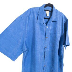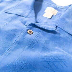 Jos A Bank Blue Short Sleeve Button Down Shirt SZ XL Hawaiian Print Tropica