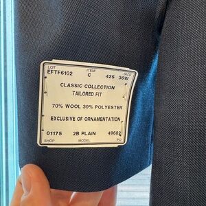 This blue sport coat from Jos. A. Bank is crafted with precision, featuring structured shoulders for a refined silhouette. Made from high-quality fabric, it offers a polished look perfect for both business and formal occasions. The clean tailoring and smooth lines ensure a sophisticated appearance.