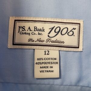 Jos A Bank Boys Light Blue Dress Shirt, Size 12, NWT. Classic light blue dress shirt. Ideal for formal and casual settings. Features a crisp collar and buttoned cuffs. Non-smoking seller.