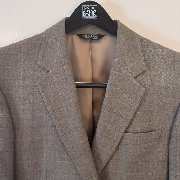 Jos A. Bank Brown Plaid Men's 38R Silk Wool Double Button Sports Coat