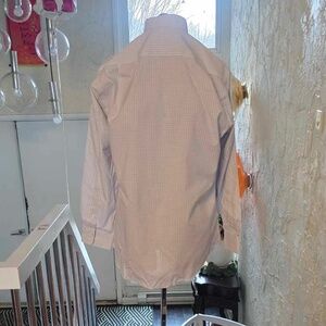 Handsome white button down, long sleeved shirt with gray checks and brown accent pinstripes by Jos A Bank.