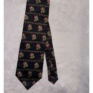 Jos. A. Bank Christmas Necktie Santa Decorating Tree Black 100% Silk Made in USA