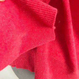 Beautiful quality on this 100% cashmere Jos A Bank sweater. V neck, oversized, cozy fit. Rose color that would work for men and women. Ribbed trim at wrists and waist/hip. Very soft, mid weight cashmere. Dark spot shown on back of neck is just wear the tag is sewn in and not a hole. In very good condition.