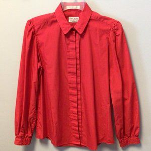 Jos A Bank Clothiers - Red hidden button front blouse. Excellent condition. Six hidden button front closure. Two button adjustable closure at each cuff. See photos.