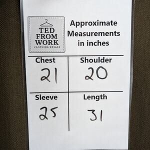 • Size 42R – Chest 21", Shoulder 20", Sleeve 25", Length 31"
