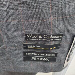 Jos. A. Bank Executive Charcoal Brown Plaid Cashmere Wool Blazer NWT Sz 46 Long