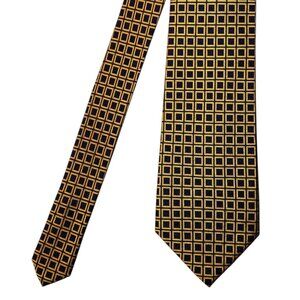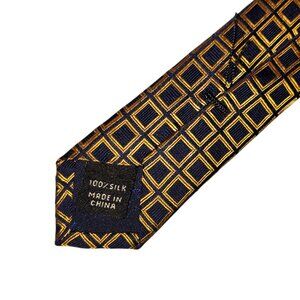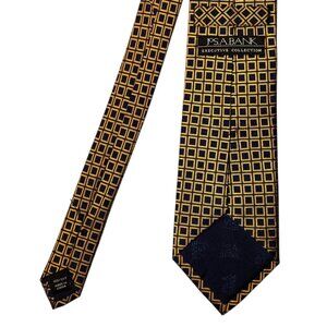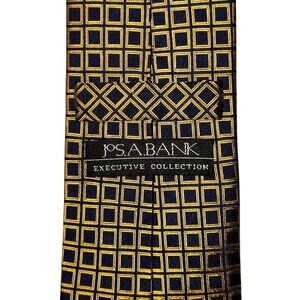 This Jos. A. Bank Executive Collection necktie is in very good pre-owned condition. No stains, holes or damage. A little material fuzzing. 100% silk, handmade in China. Blue and gold colors, geometric square pattern. Colors may vary slightly due to lighting, fabric textures and computer/mobile settings.