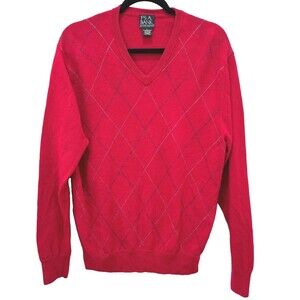 Jos A Bank Executive Red Sweater Mens L Lambs Wool Argyle Career Office Holidays