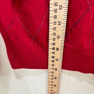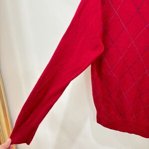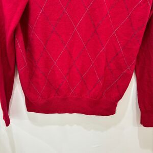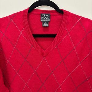 Features: Jos A Bank Executive Red Sweater. Argyle Print. Lambs Wool Blend. V-neck
