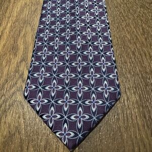Jos. A Bank Geo Medallion Geometric Tie Dark Plum Purple Navy 100% Silk