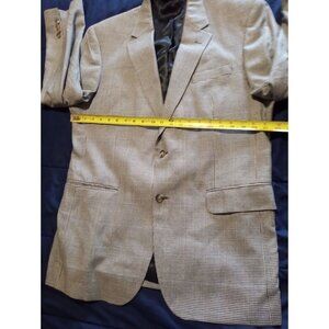 Jos A Bank Gold Brown Check Mens Sz 43R Silk Wool Blazer Sport Suit Coat Jacket
