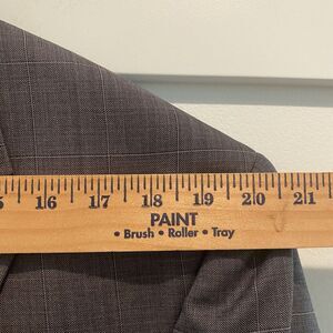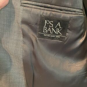 Classic gray suit by Jos. A. Bank. Includes blazer and trousers. Perfect for formal occasions.