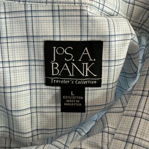 Jos. A. Bank Light Blue & White Plaid Long-sleeve Dress Shirt, Large, Pre-owned