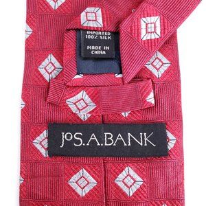 Jos. A. Bank Men 100% Silk Tie Check Red Silver 60x4 - NWOT
