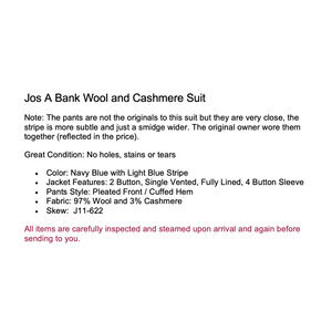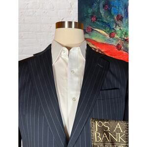 Jos A Bank Mens 41R 36x33 Navy Blue Stripe Wool Cashmere Suit Jacket Pants Set