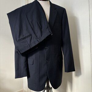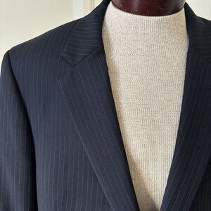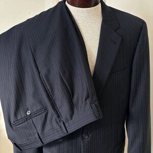 Jos. A. Bank Mens 44L Navy Striped 100% Wool 2 Piece Suit With Dress Pants 38x33