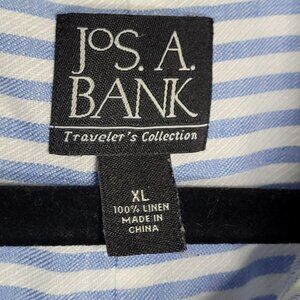 Jos A Bank Button Down Shirt XL Blue White Railroad Stripe Long Sleeve 100% Linen Mens Travelers Collection Collared