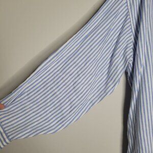 Jos A Bank Mens Blue White Railroad Stripe Long Sleeve Linen Button down XL