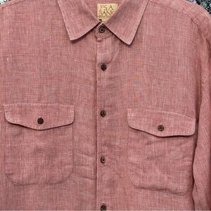 Jos A Bank Men’s L Red 100% Linen Shirt Long Sleeve Button Front Pockets
