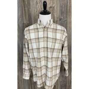 Jos. A. Bank Men's Traveler's Collection Linen Shirt Medium Beige Plaid Button Front. Run's a bit big for a medium, so please see measurements below. Excellent condition!